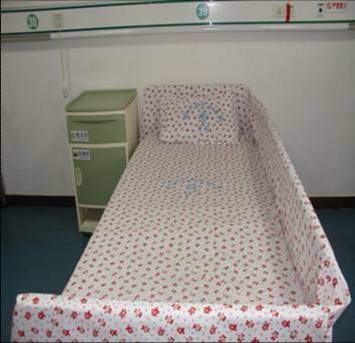 从制度上保证病人安全。一是在原有基础上,编印了护理工作规范、护理工作核心制度;二是制定了护理管理流程、护理工作流程/指引、重点环节流程/指引、护理操作流程/指引等;三是注重持续改进各重点部门、重点项目、病房等的护理质量检查评价标准;四是编印了《患者安全目标知识问答》、《11项专科护理安全质量目标》、《优化患者门急诊就诊流程措施及高峰时段合理分流患者工作预案》等多本小手册,人手一册,作为护理人员的行动指南。(图片1:手册;我们的防坠床、防烫伤警示牌