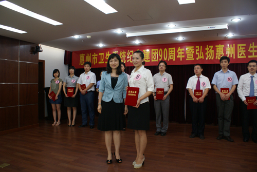 531日下午,惠州市卫生系统在市卫生局三楼会议室举行了“庆祝建团90周年暨弘扬惠州医生精神演讲比赛”,各县(区)卫生局团委、市直各医疗卫生单位团组织共选送15名优秀选手参加此次演讲比赛。