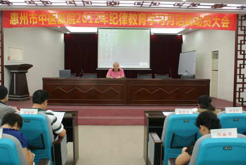 为进一步增强全院干部职工的党性观念和法纪意识,9月13日,我院在办公楼五楼会议室召开了“惠州市中医医院2012年纪律教育学习月活动动员大会”,会议由院党委副书记殷舒华主持,全院干部职工参加了大会。