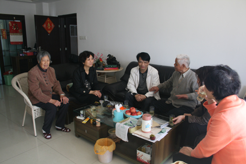 院党书记、院长刘庆荣(中)在离休干部叶剑夫家中慰问