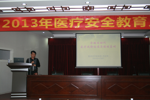 4月8日,我院举行了2013年医疗安全教育活动月启动仪式,刘庆荣院长作重要讲话并主讲首场专题讲座。活动由田育红副院长主持。全院职工参加了活动。