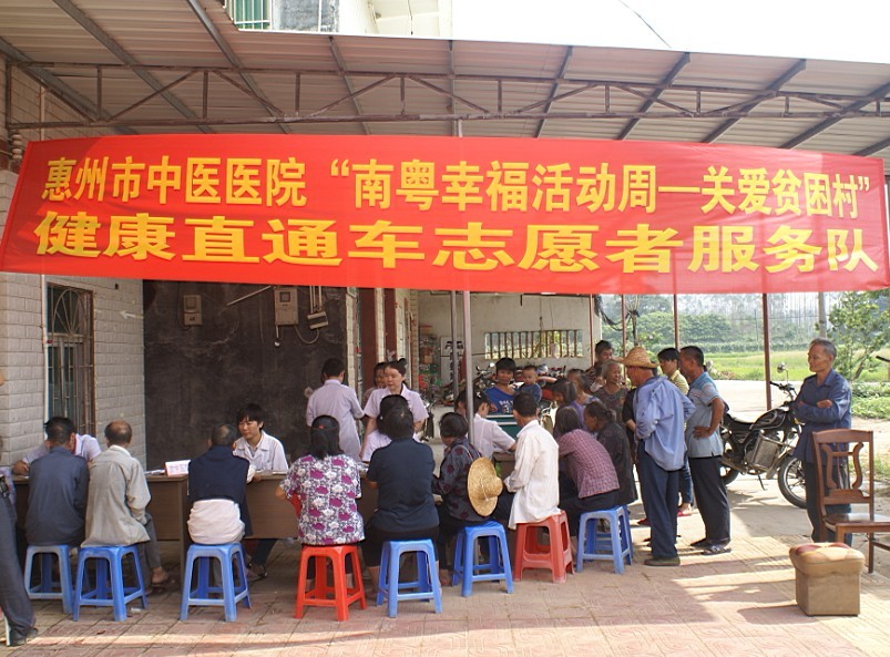 9月30日,我院组织了10位青年医疗卫生工作志愿者,到博罗县湖镇镇下径村开展“南粤幸福活动周——关爱贫困村”健康直通车志愿服务队活动,医护人员热情为前来咨询的病人提供义诊服务,为广大患者解疑答惑。上午9时许,等候在义诊活动现场的患者人头攒动,气氛热烈。医生现场为患者诊治、测量血压,做健康指导。短短的两个多小时,免费为上百名患者提供义诊服务,并向他们派发了卫生知识宣传资料、派送药品。