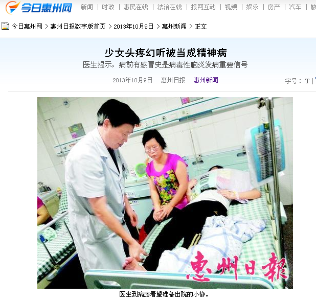 医生,要不是您的诊断和治疗,我女儿可能就会在精神病院继续待下去,真的太感谢您了!”日前,家住惠东县的陈女士从市中医医院接回了求医近半年的14岁女儿小静(化名)。回忆起曲折的就医经历,母女俩都长长舒了一口气。据了解,小静得的是病毒性脑炎。这个并不陌生又不是疑难杂症的疾病,怎么会让她去了精神病院呢?