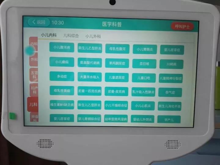 患者躺在病床上,只需触屏轻轻一点,就可以在平板电脑上看到医院风采、科普知识、视频娱乐,电子书刊、休闲游戏……此项智能服务是免费提供给住院患者使用,可让患者及家属享受轻松、愉快的住院生活,体验家一样的感觉。