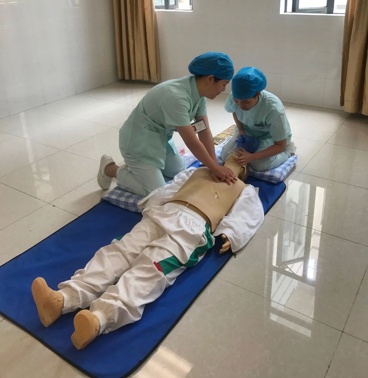 据悉,为庆祝5.12国际护士节及提高护士对突发心跳呼吸骤停患者的应急抢救能力及抢救成功率,让护理人员能准确的掌握心肺复苏术,我院护理部特在4月17日、18日下午组织开展了此次徒手心肺复苏术操作竞赛。