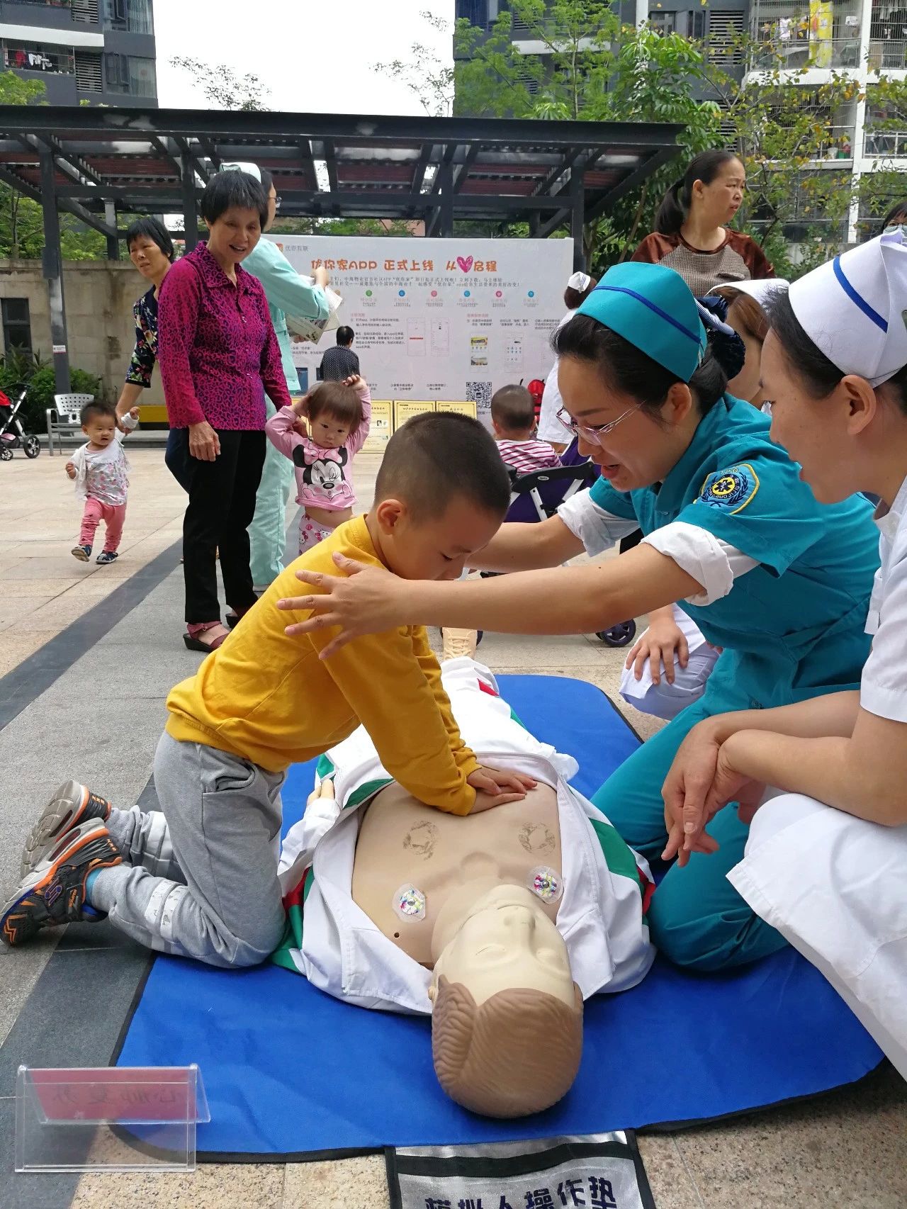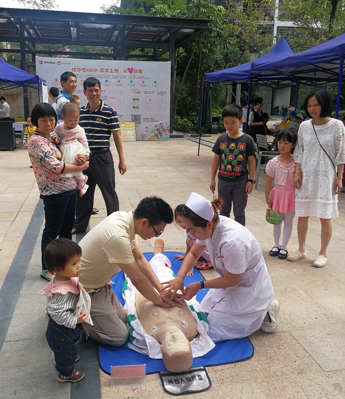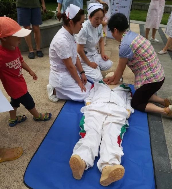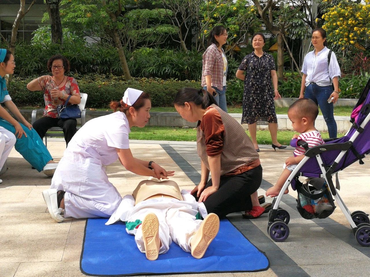 ▲通过现场示范讲解心肺复苏术等急救知识,面对面、手把手教授急救操作,为居民现场上了一堂生动的户外保健课。