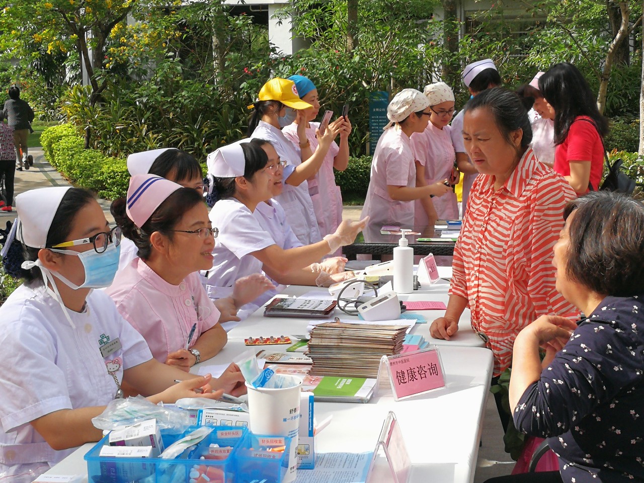 活动当天,由30名护理志愿者组成的义诊队伍,早早赶到现场,搭台准备、有条不紊。活动设急救演练区、母婴保健区、儿童保健区、地贫防治区、中医适宜技术区、健康咨询区,免费测血压、测血糖、检测胎心音,发放健康宣传手册等等。