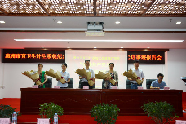 在中国共产党建党97周年之际,市卫计局组织了庆祝建党97周年“我是共产党员”先进事迹报告团,大力弘扬新时代卫计系统共产党员精神,向建党97华诞献礼。报告团共5名成员,他们是我市卫计系统2000多名共产党员的优秀代表,分别是市中心人民医院重症医学科主任凌云、我院外科副主任医师詹尚欣、市第一人民医院老年病区主任谭小颖、市第二人民医院四区护士长李伟丽和市妇幼保健计划生育服务中心产前诊断中心主任陈剑虹同志。