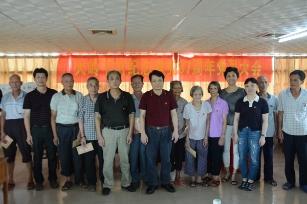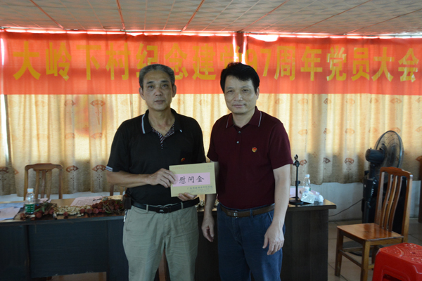 6月30日,我院党委书记、院长刘庆荣率驻村工作组一行4人到挂钩帮扶村博罗县杨村镇大岭下村参加村党总支庆祝建党97周年党员大会,与大岭下村全体党员共庆党的生日。党委副书记龚小琦为扶贫村全体党员上了一堂专题党课,刘庆荣作了讲话,并代表院党委对大岭下村村委和老党员们进行了慰问。