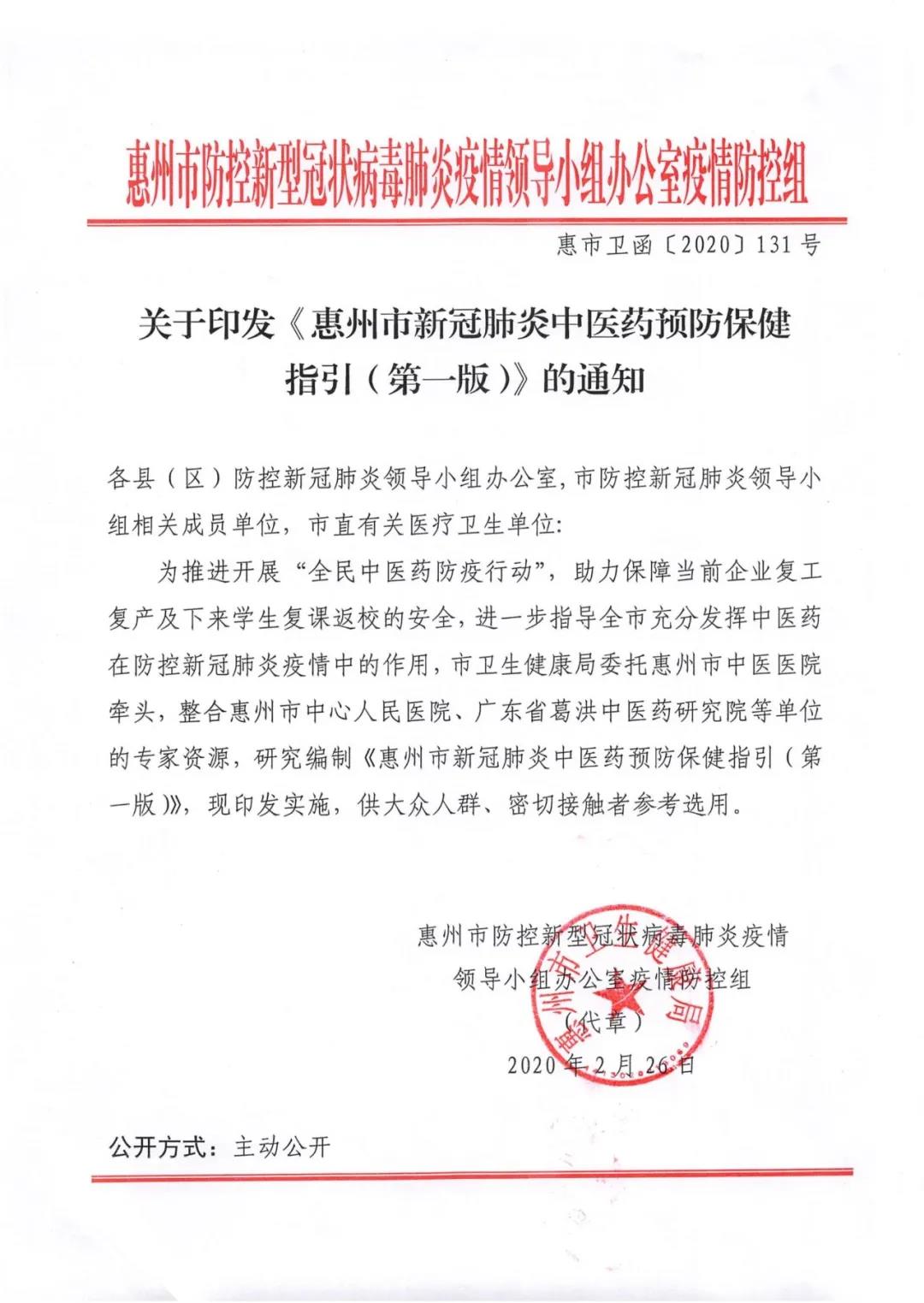 最新最全!惠州市新冠肺炎中医药预防保健指引来啦!