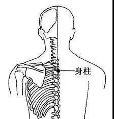 【取穴法】取穴时采取俯卧位或者俯伏坐位,先定大椎穴(第7颈椎棘突下凹陷中),然后定身柱穴。