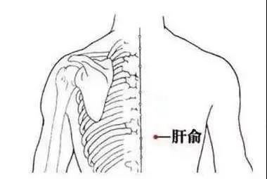【取穴法】双手握拳,手臂屈曲,拳背置于后背两侧,当前臂呈水平位时,手背的位置就是肝俞穴。