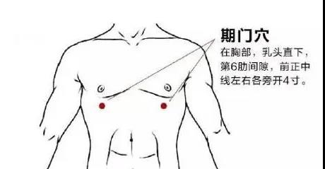 【取穴法】从乳头往下数两个肋间隙就是期门穴。