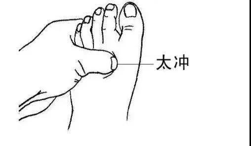 【位置】太冲穴位于足背,第一、二跖骨间,跖骨底结合部前方凹陷中,或触及动脉搏动,正坐或仰卧取穴。