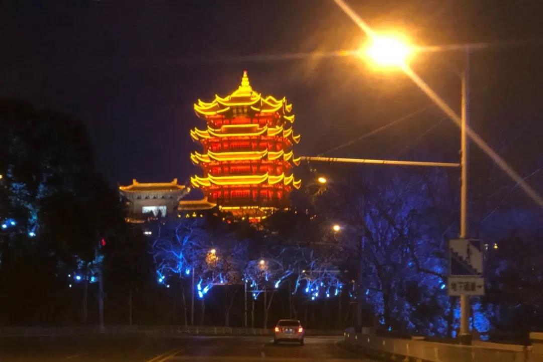 忙碌了一整天,下班坐上接送专车,不知道谁说了一声:“听说武汉的夜景很美,等疫情结束了,我们也去看看!”司机大哥也不说什么,就不声不响地绕行黄鹤楼街道,让我们远眺黄鹤楼夜景。这座屹立在蛇山之上、濒临万里长江的“天下江山第一楼”蔚为壮观,“孤帆远影碧空尽,唯见长江天际流”、“黄鹤一去不复返,白云千载空悠悠”的诗句在脑海中萦绕。回望来路像一条波平如镜的河流,蜿蜒在浓密的树影里,只有那些沙沙作响的树叶,似在回忆着过往的喧嚣。
