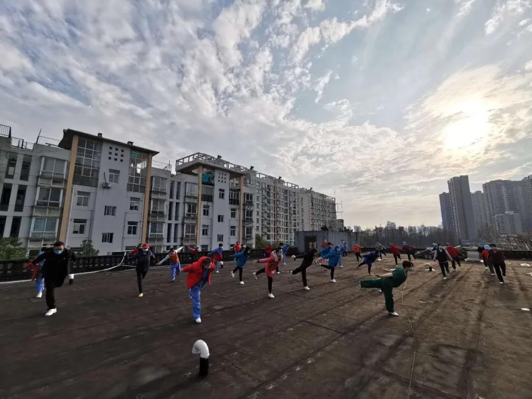 我院援鄂医疗队带领方舱医护人员锻炼身体