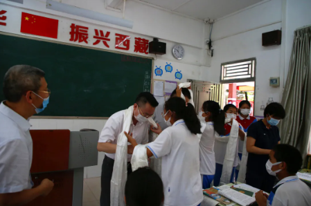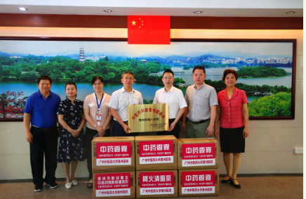 此次活动,我院分别向惠州市第八中学、惠州市实验中学捐赠了200包降火清咽茶、1000枚防疫香囊、派发了《惠州市新冠肺炎中医药预防保健指引(第一版)》宣传册等,并为惠州市第八中学、惠州市实验中学授牌,将这两所中学列为我院的“中医药科普知识服务点”。