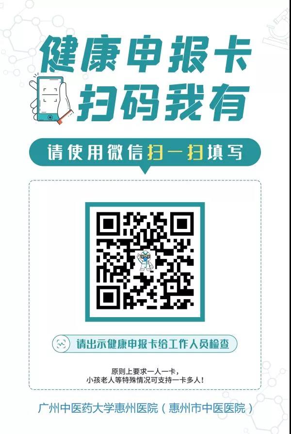 1.长按识别下方市中医医院“健康申报卡”专属二维码(如下图),填写相关信息获得健康申报卡。(健康申报卡有效期 24 小时)