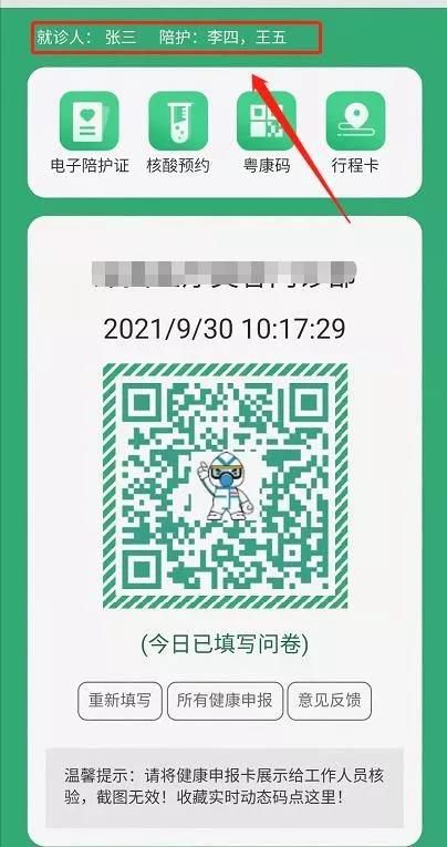 2. 提交后“健康申报卡”含就诊人、陪护人信息,可支持一卡多人。