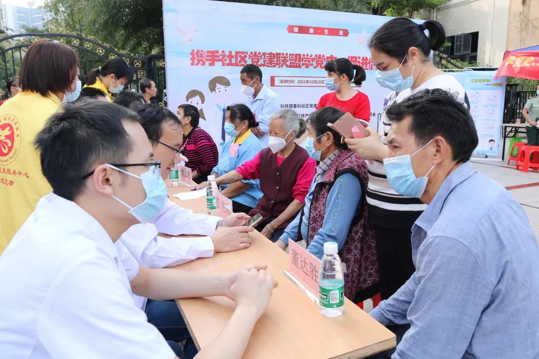 为扎实开展党史学习教育,主动为群众提供高效、优质的医疗服务,不断深化党史学习教育成果,10月28日下午,我院骨伤科二区在谭志宏主任的带领下,走进仲恺高新区惠南工业园康诗丹郡小区广场开展义诊活动,为广大居民免费体检、科普宣教。