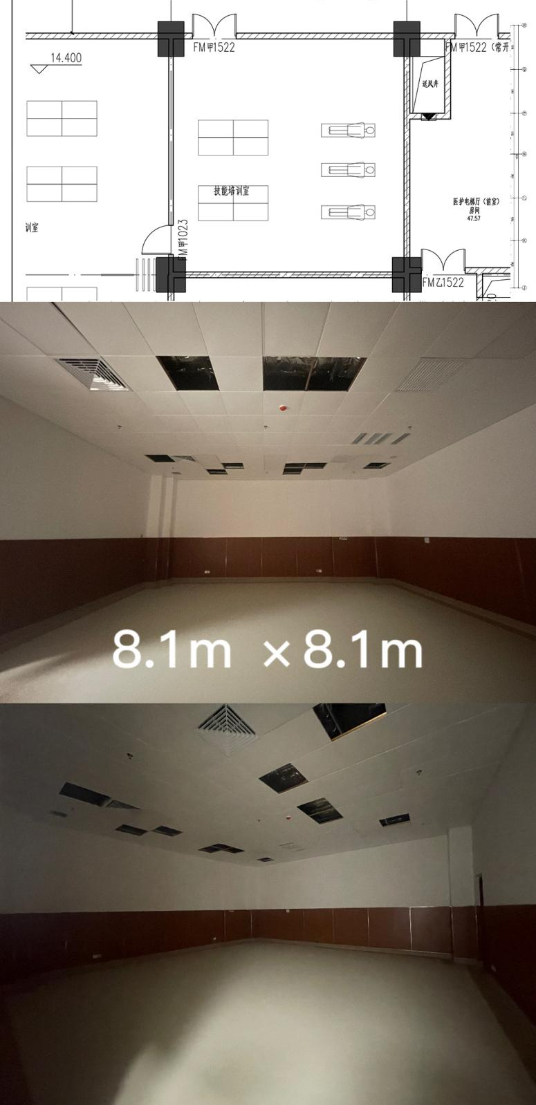 3.场地情况:项目地址为惠州市中医医院东院区(惠城区东升一路)住院部3号楼4楼,展馆面积约64m2,平面图和实景图如下。