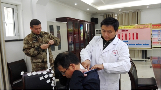 12月的喀什漫天飞雪,气温零下10度,李志峰和同事们到达后,看到现场已有好多人等候在那里,他们顾不上喝一口水,来不及暖一下冰冷的手脚,迅速行动起来。配药、备敷料、登记、答疑,询问健康状况、查体定位、贴药……因为去年的这个季节,这里的人们已经体验到了“三九灸”的益处,所以,当他们听说 “三九灸”的医生今年又来了,纷纷奔走相告,来贴灸、保健的干部群众纷至沓来。他们围着医生,争先恐后地问询。李志峰热情地接待每一位群众,详细问诊和解答,交待贴药时间、贴药后的注意事项。一位老干部贴完灸后还打电话叫来他的老搭档。他开心地说“援疆的医生就是好啊,我们在家门口就可以享受专业的中医保健服务了!”