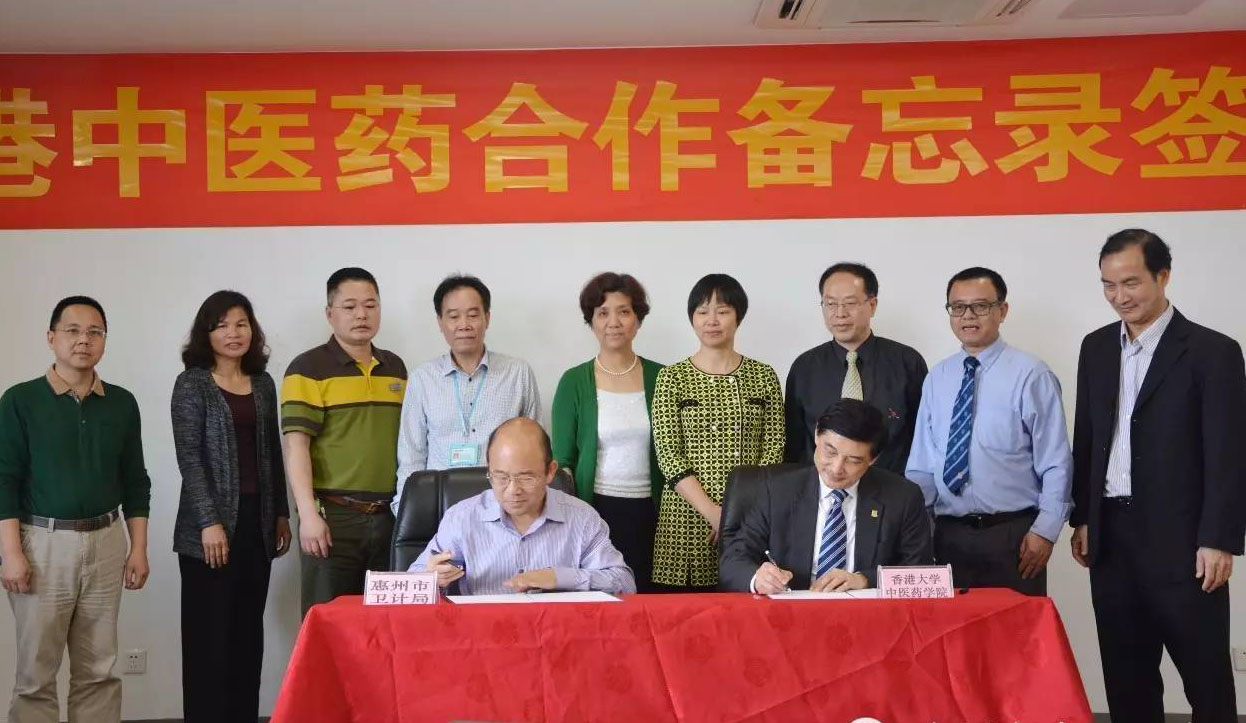2016年4月20日下午,惠港中医药合作备忘录签约仪式在我院东江新城院区举行。出席签约仪式的有香港大学中医药学院院长劳力行教授、香港大学中医药学院副院长沈剑刚教授、香港大学中医药学院副院长张樟进教授、香港大学中医药学院副院长冯奕斌博士,市卫计局局长许岸高、市外事侨务局副局长游小慧、相关部门人员,以及我院班子成员。许岸高主持签约仪式。