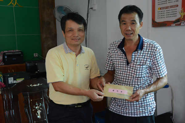 党委书记、院长刘庆荣代表院党委向大岭下村党支部送上一笔节日慰问金